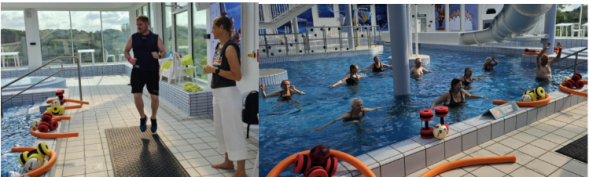 Der blev trænet smidighed og styrke, og de fik både sved på panden af vægttræningen, og afslapning i hele kroppen når de hvilede i vandet til sidst.